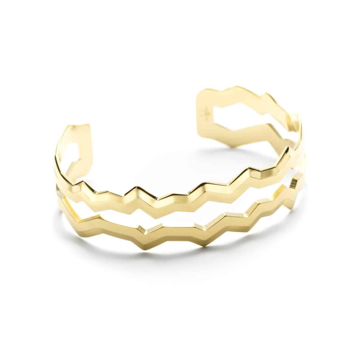 - Bracelet jonc ouvert, rigide et ajustable.