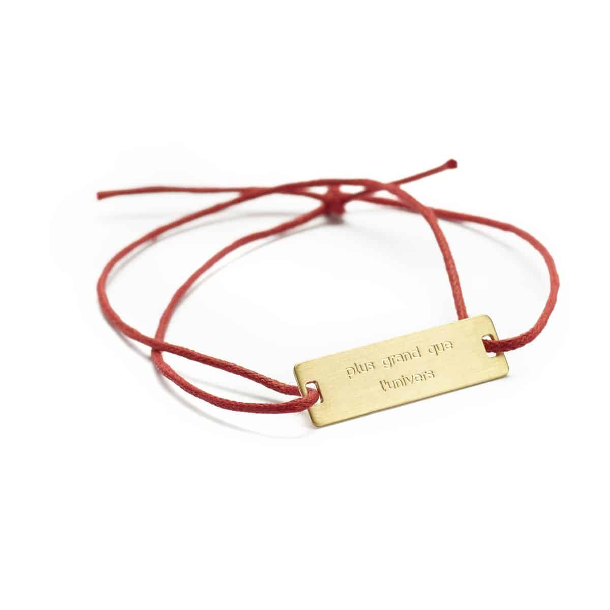 Bracelet à texte en argent massif et son cordon 100% coton ou paillettes.